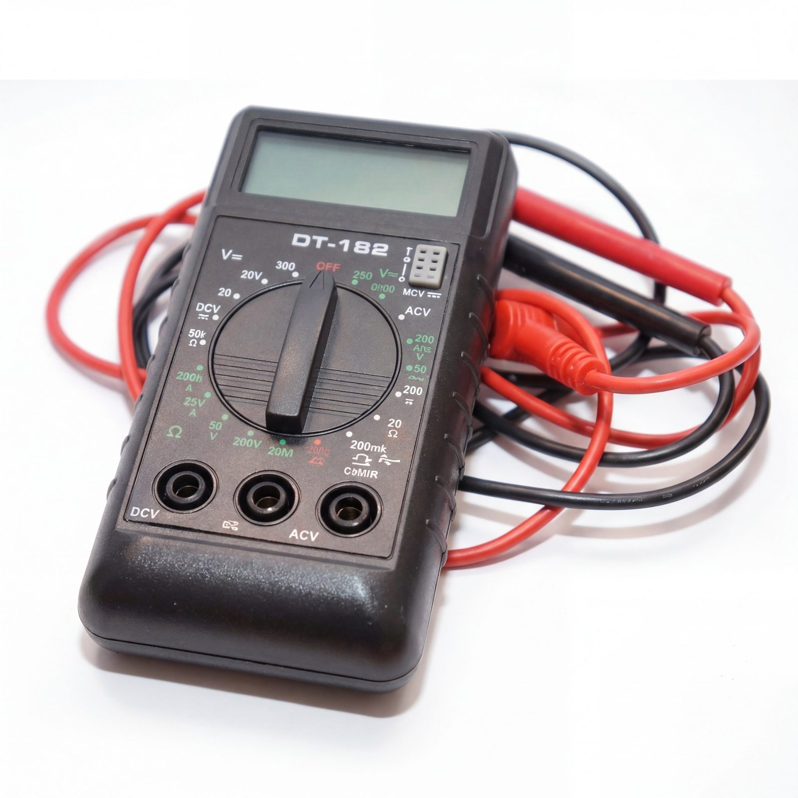 Завдяки Digital DT-182 Multimeter ви отримаєте широкий спектр вимірювань в одному компактному пристрої. Вимірюйте напругу, струм, опір, тестуйте діоди та транзистори – все це з високою точністю.